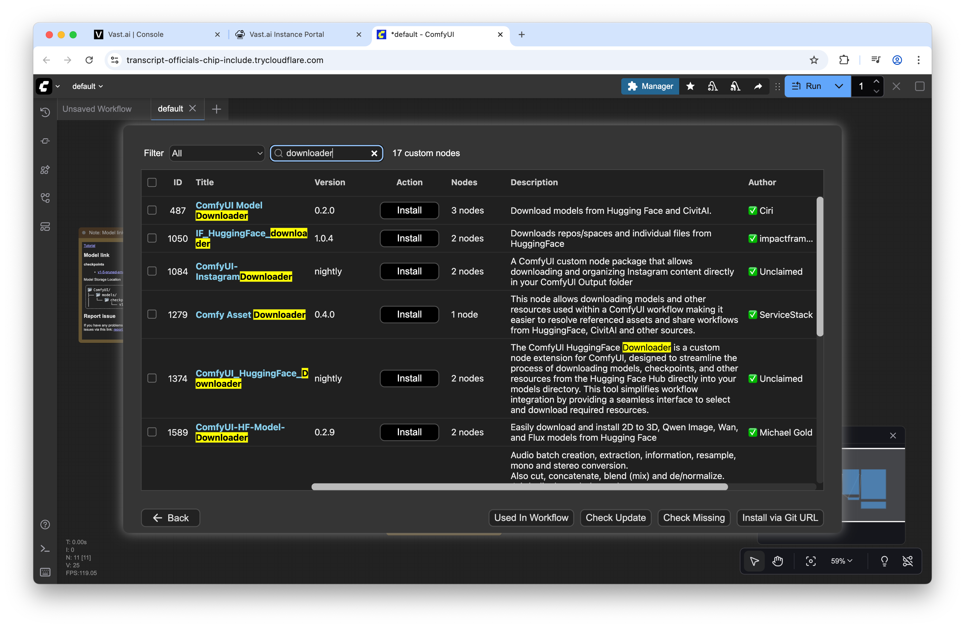 - Install “ComfyUI Model Downloader” via the Custom Nodes Manager.