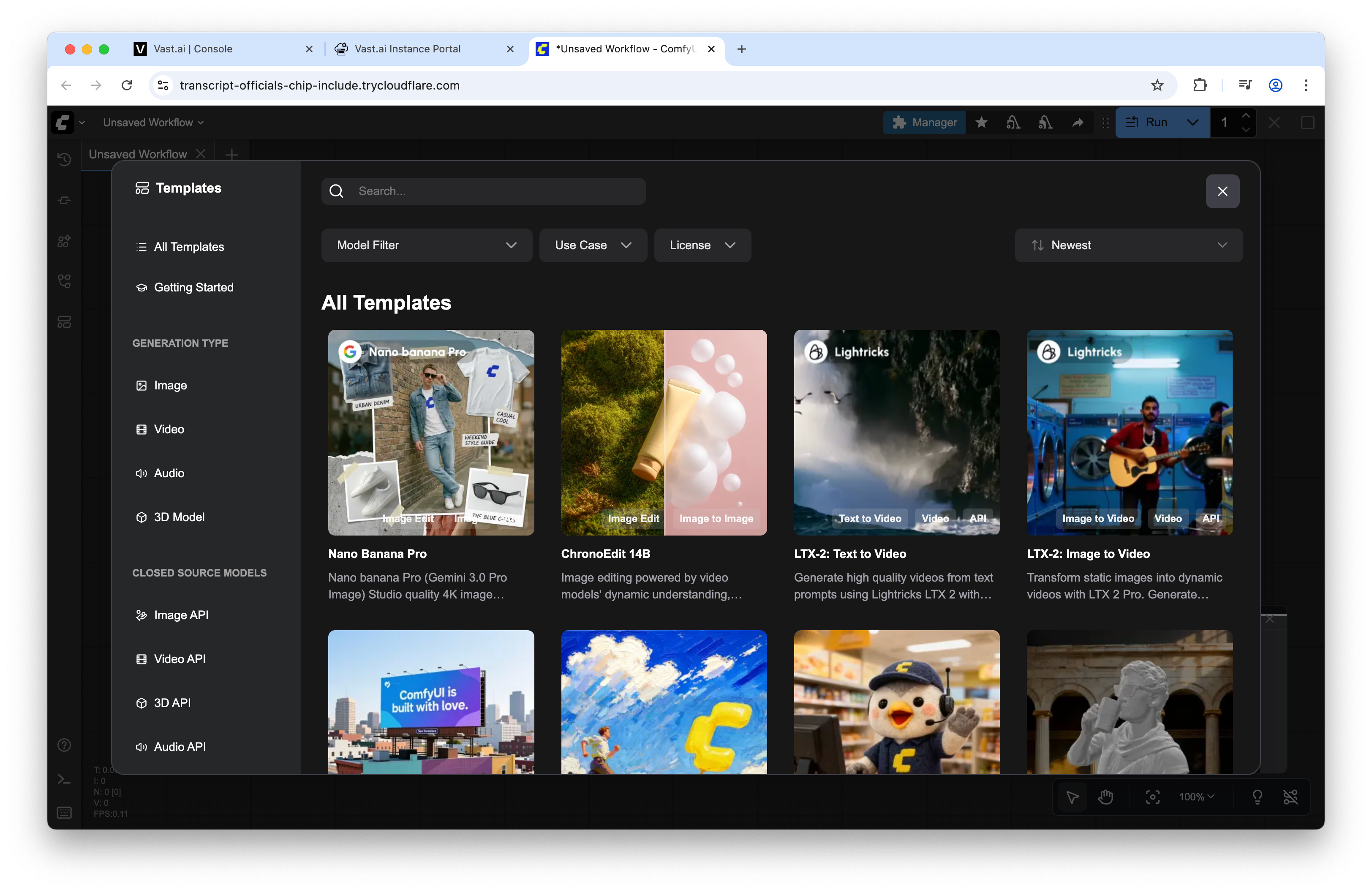 This write-up details a production-minded setup for ComfyUI on Vast.ai (aff. link), with an emphasis on hardware selection, data/egress economics, model management at scale, and reproducibility using Hugging Face tooling.